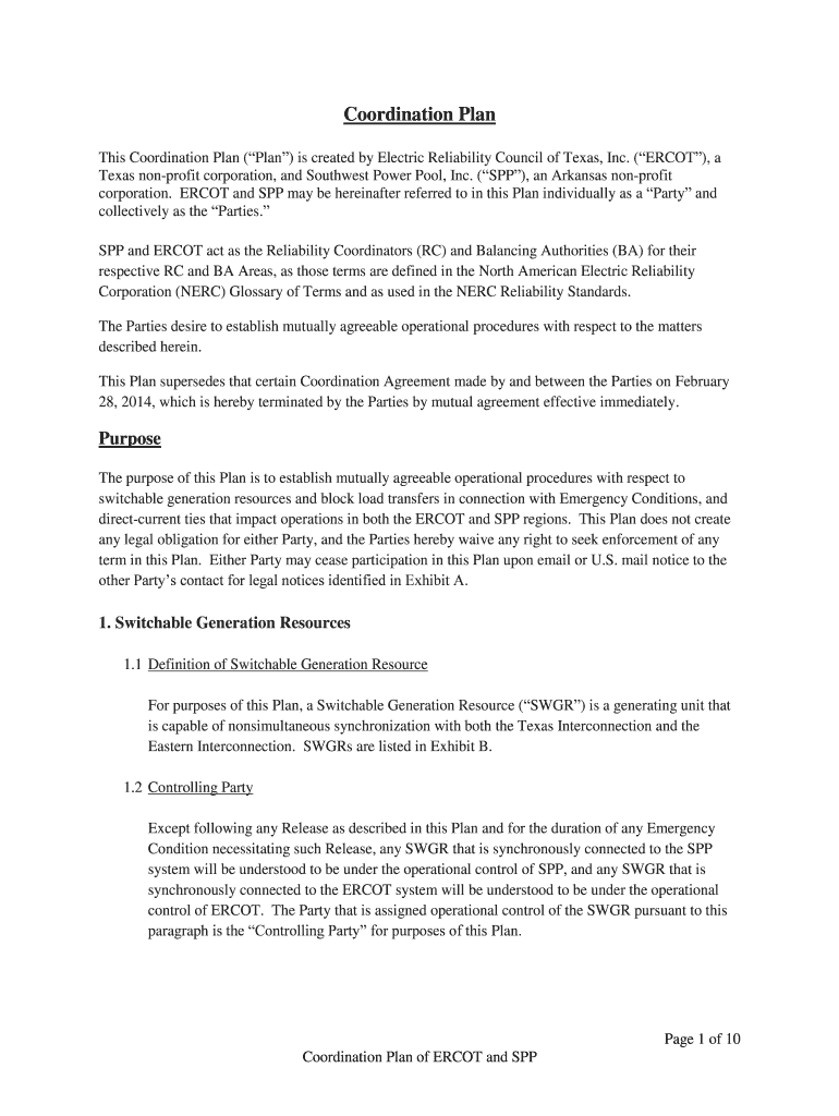 This Coordination Plan (Plan) is created by Electric Reliability Council of Texas, Inc. (EPCOT), a