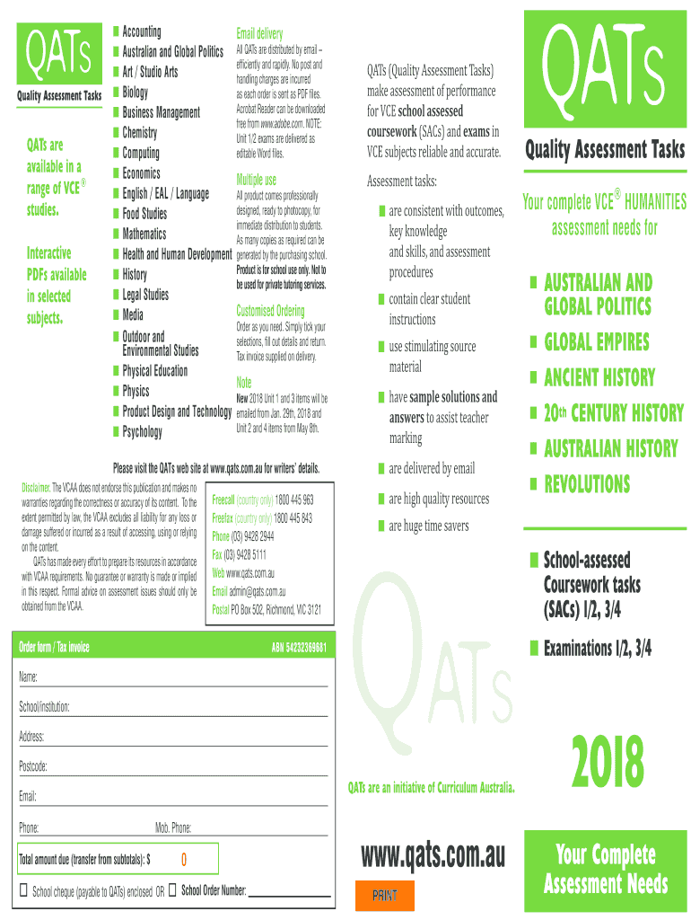Get the free Australian and Global Politics All QATs are distributed by email