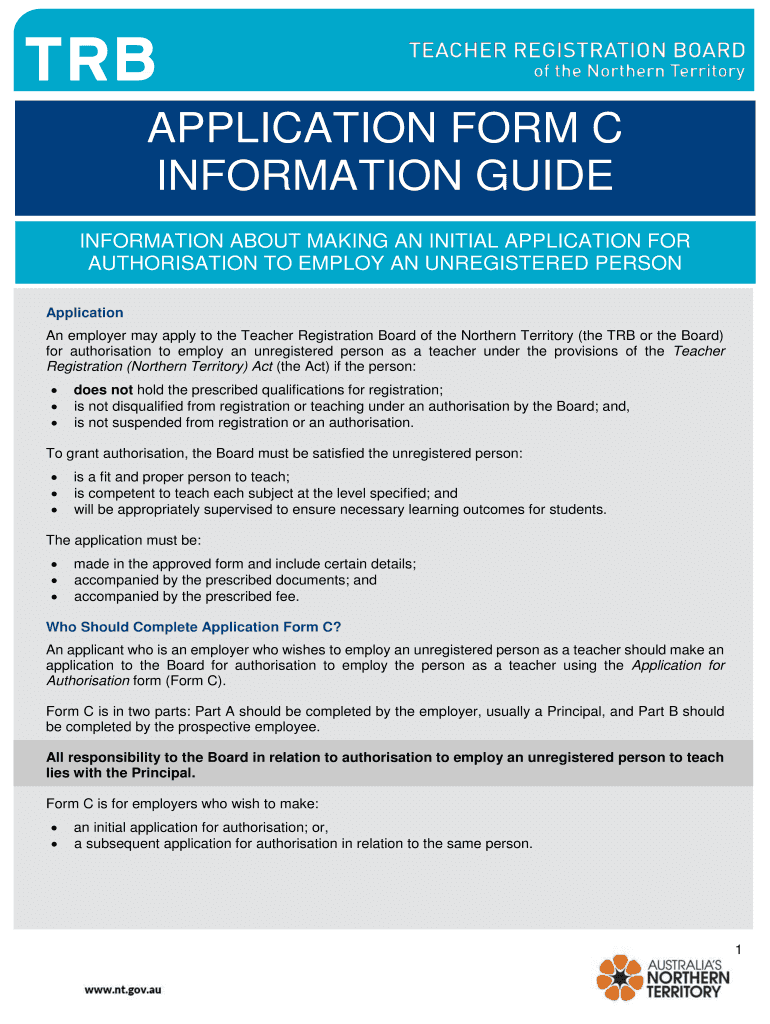APPLICATION FORM C INFORMATION GUIDE INFORMATION ABOUT MAKING AN INITIAL APPLICATION FOR Authorization TO EMPLOY AN UNREGISTERED PERSON Application An employer may apply to the Teacher Registration