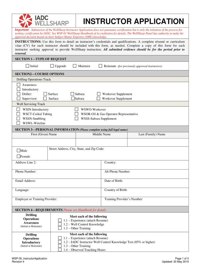 Important: Submission of the Well Sharp Instructor Application does not guarantee certification but is only the initiation of the process for