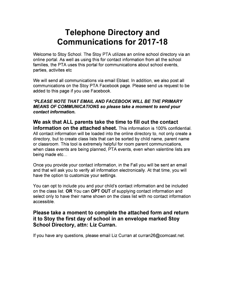 Get the free Stoy PTA online portal Form 17-18