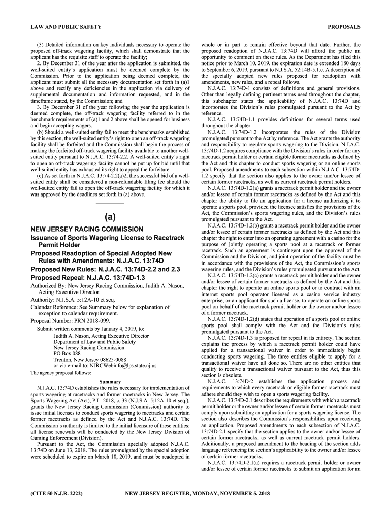 Familiarize yourself with the new horse racing law by reading the legislation.