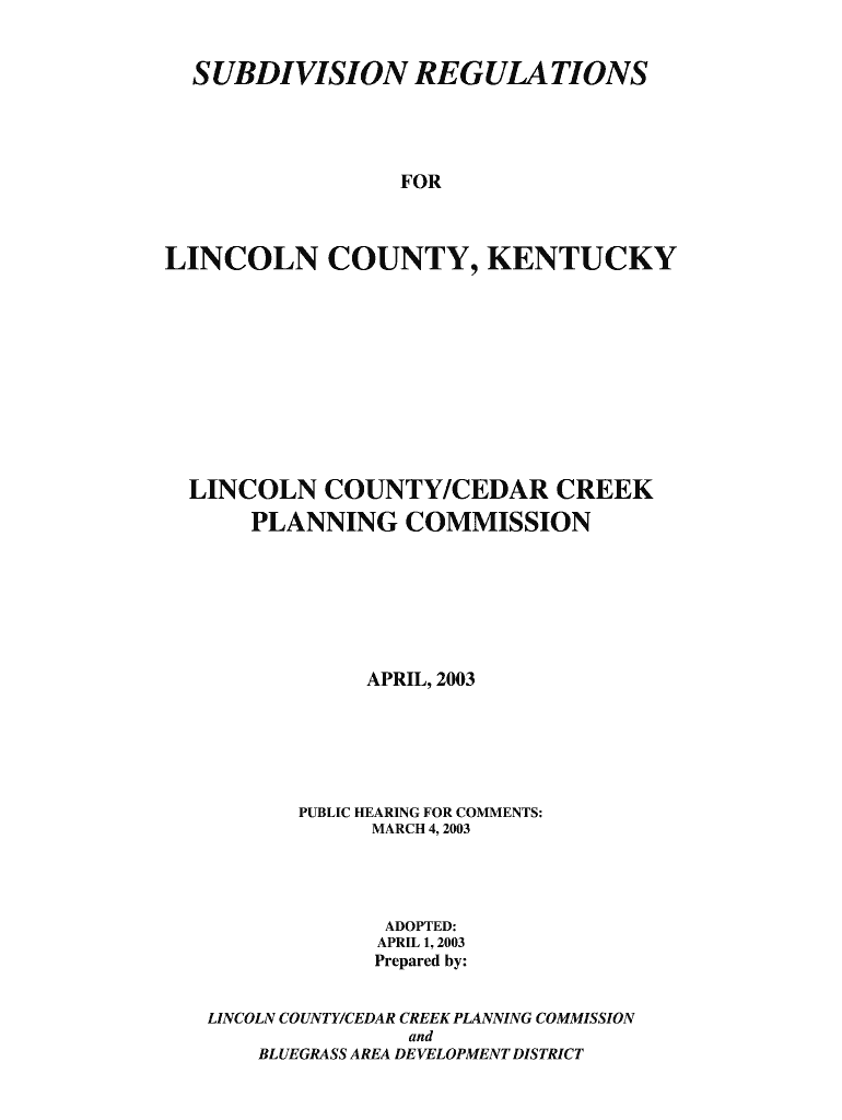 LINCOLN COUNTY, KENTUCKYLINCOLN COUNTY/CEDAR CREEK