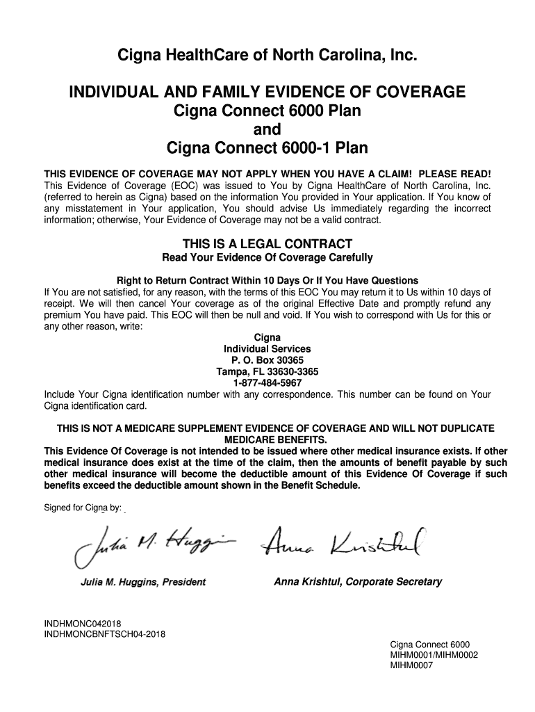 INDIVIDUAL AND FAMILY EVIDENCE OF COVERAGE