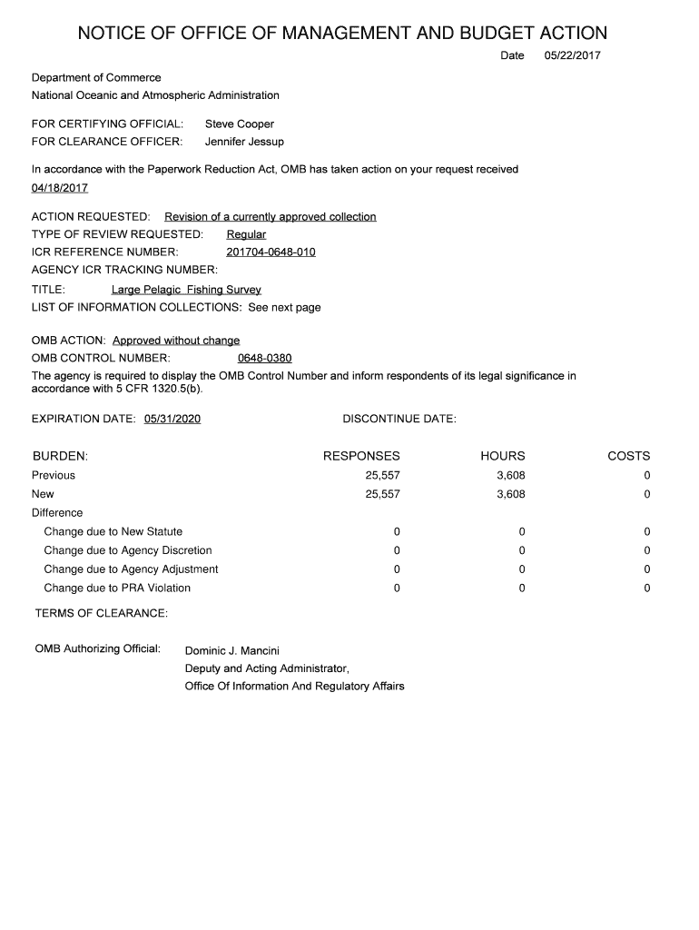 NOTICE OF OFFICE OF MANAGEMENT AND BUDGET ACTION