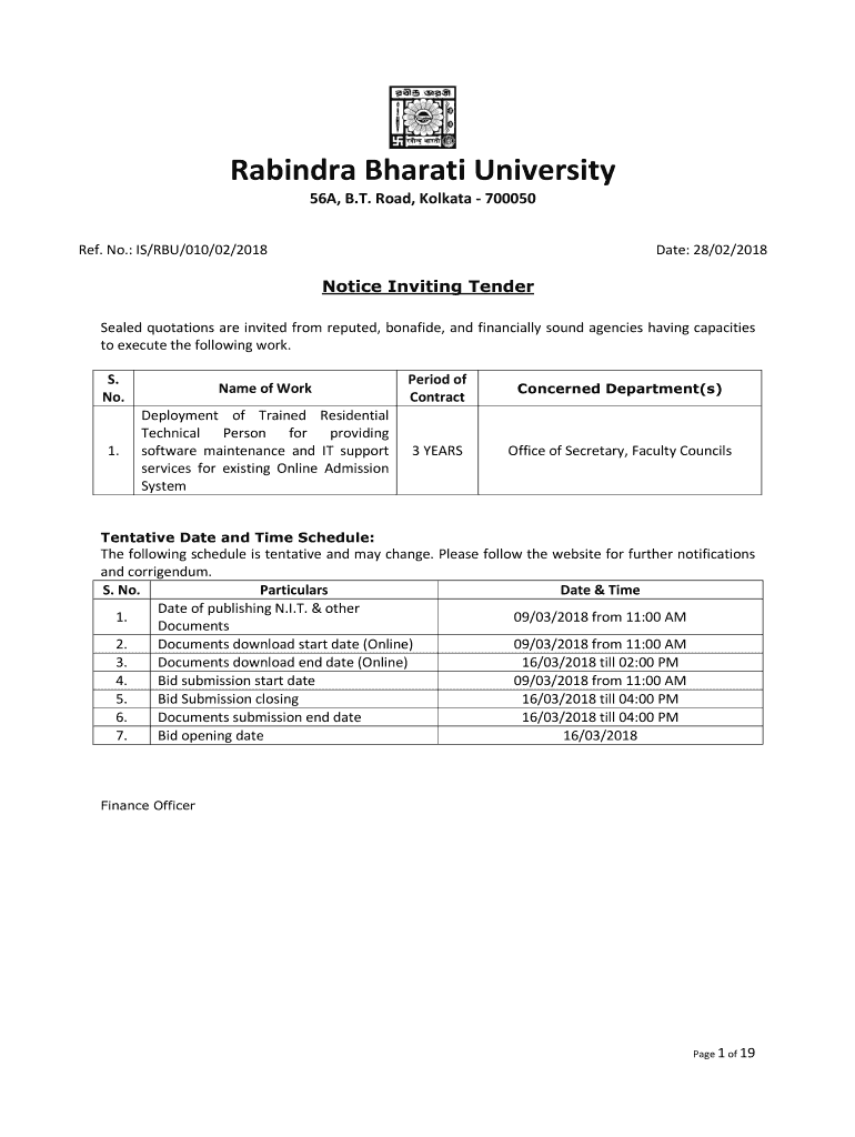 Get the free Notice Inviting Tender to execute the following work.