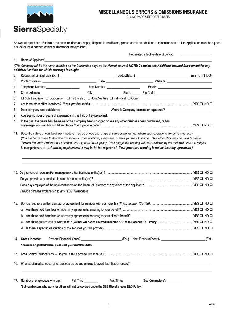 Get the free Errors and Omissions - Professional Liability Insurance Services
