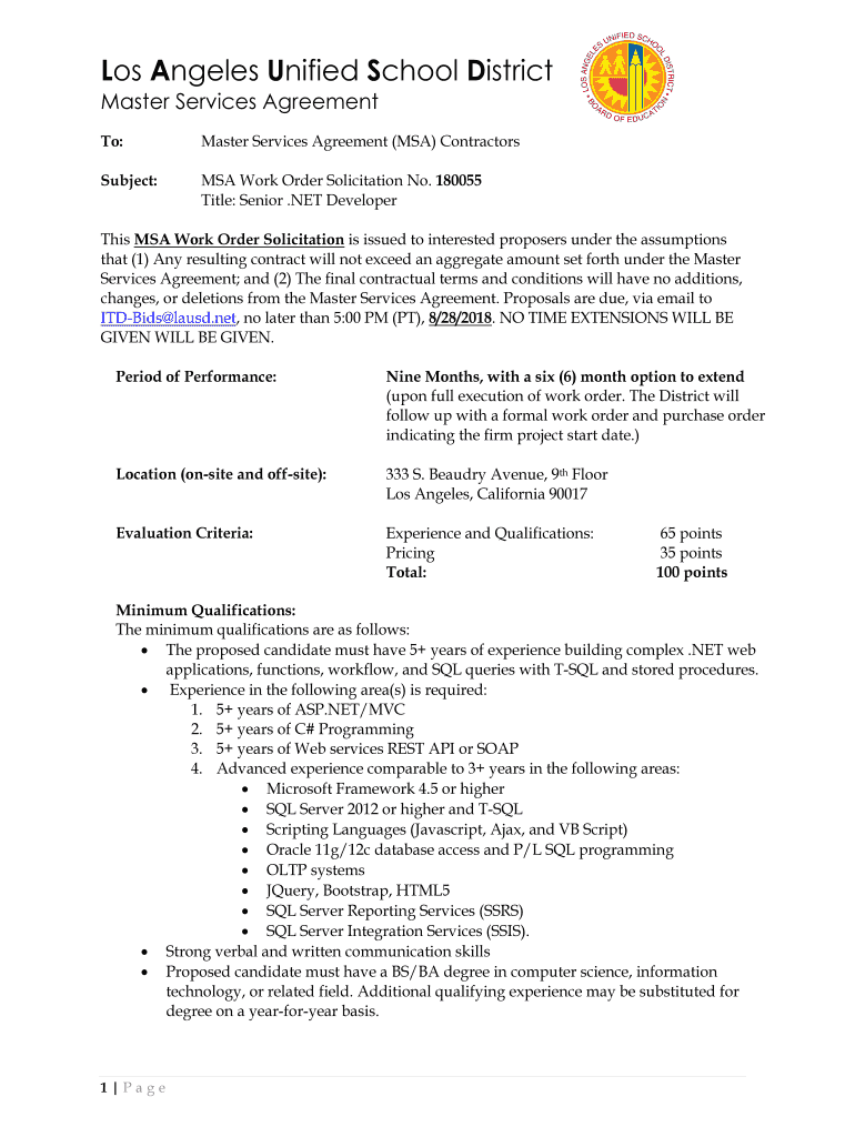 To:Master Services Agreement (MSA) ContractorsSubject:MSA Work Order Solicitation No. 180055
