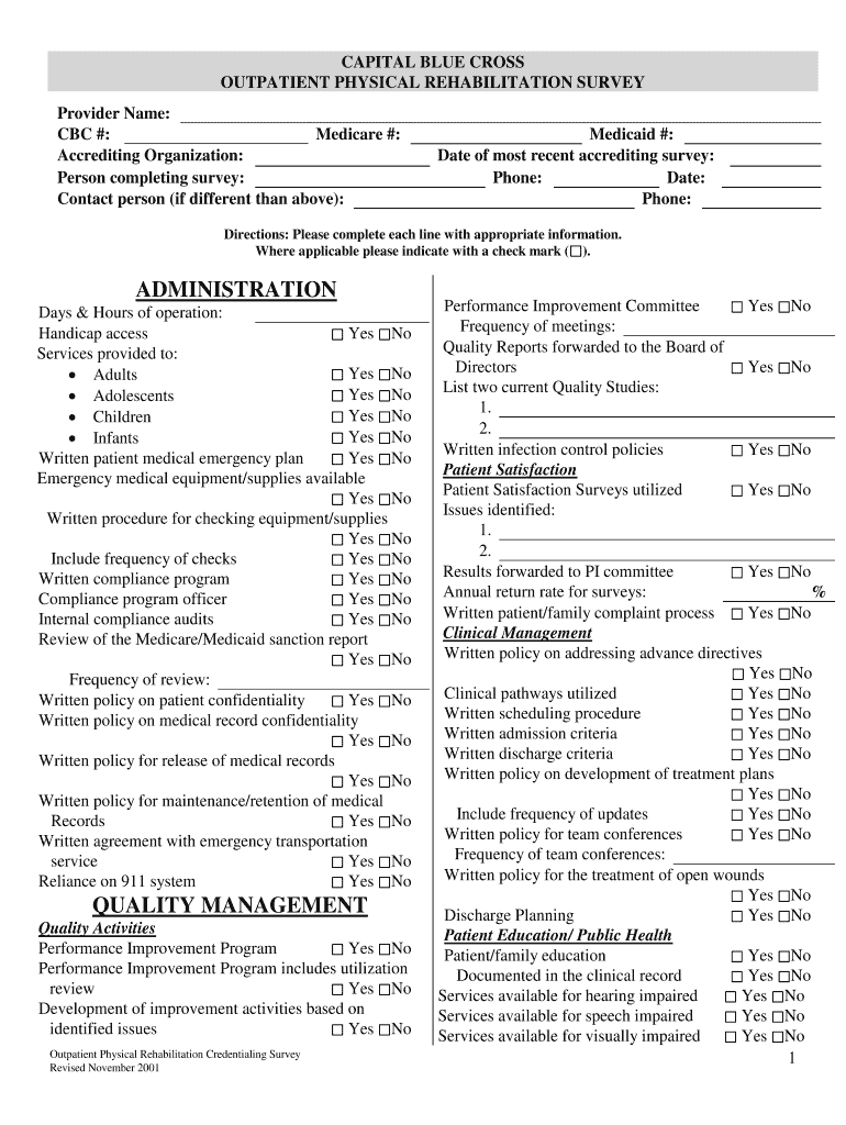 Get the free Outpatient Physical Rehab - Capital Blue Cross