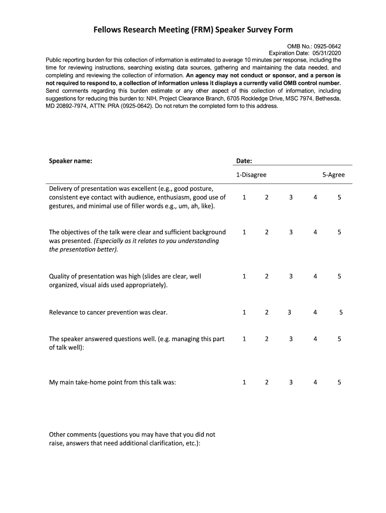Fellows Research Meeting (FRM) Speaker Survey Form