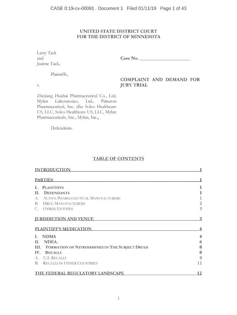 CASE 0:19cv00091 Document 1 Filed 01/11/19-Page 1 of 43UNITED STATE DISTRICT COURT