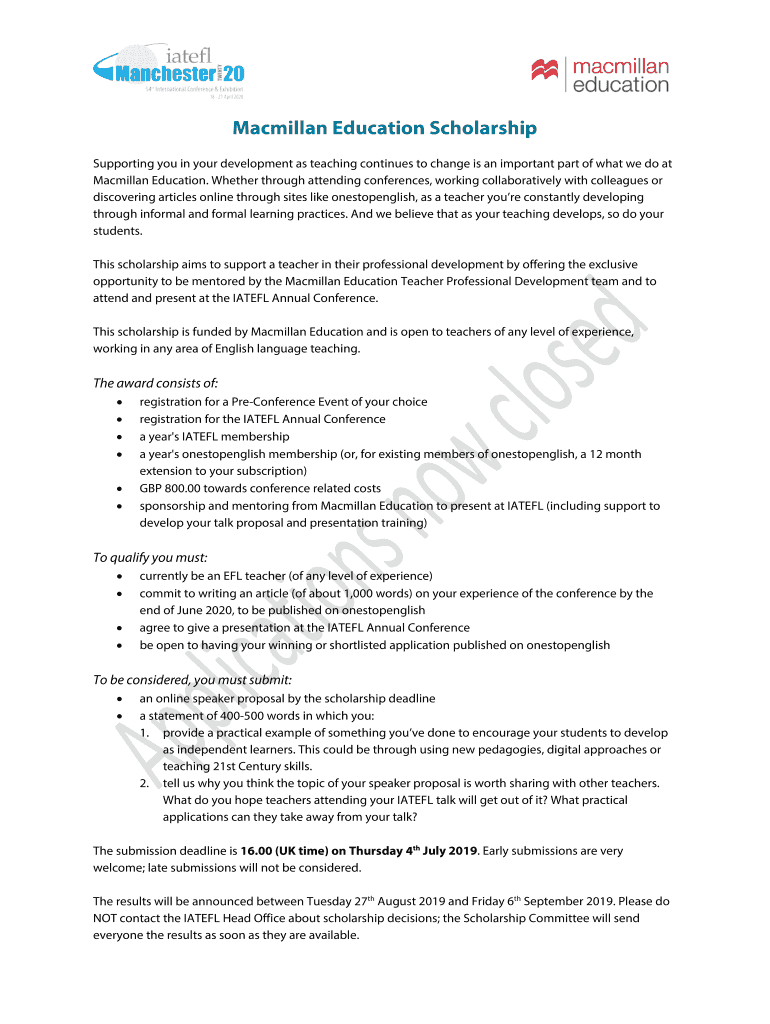 Macmillan Education Scholarship