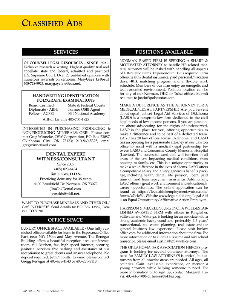 Classified Ads SERVICESPOSITIONS AVAILABLE COUNSEL LEGAL RESOURCES SINCE 1992 Exclusive research & writing. The Highest quality: trial and appellate, state and federal, admitted and practiced U.S.