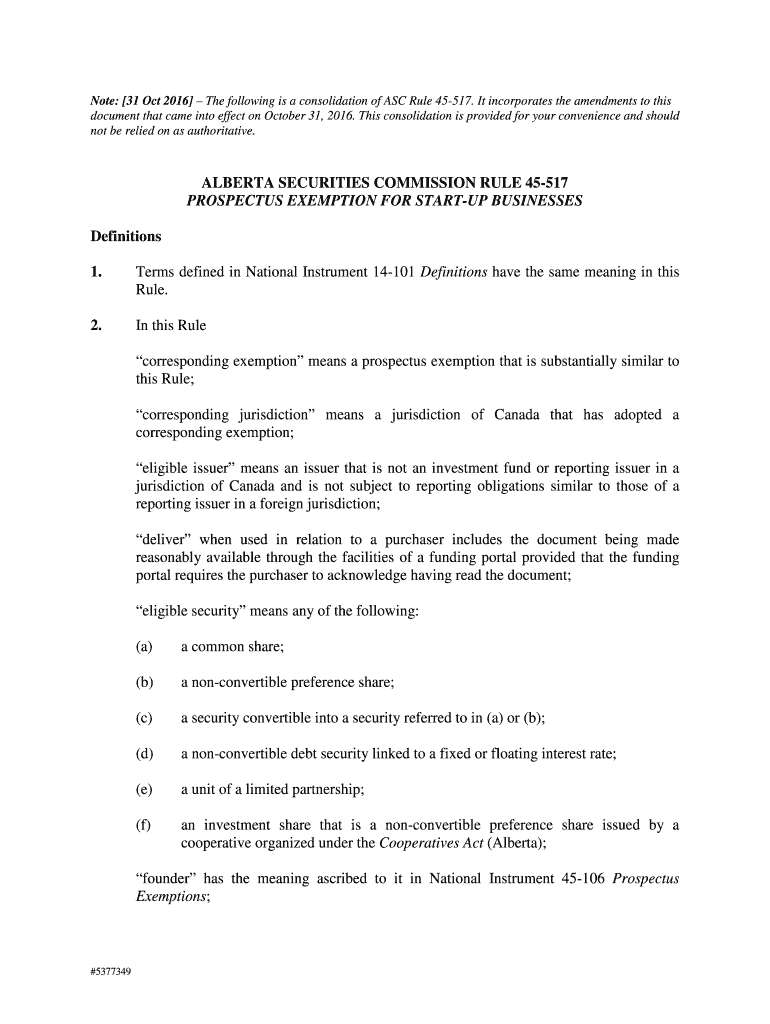 Note: 31 Oct 2016 The following is a consolidation of ASC Rule 45517. It incorporates the amendments to this document that came into effect on October 31, 2016. This consolidation is provided for