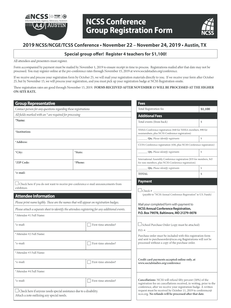Get the free NCSS Conference Group Registration Form - National ...