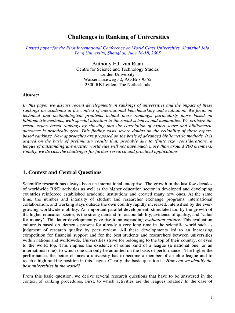 Get the free Nations' Share of the Top 500 and 100 Research Universities ... - citeseerx ist psu