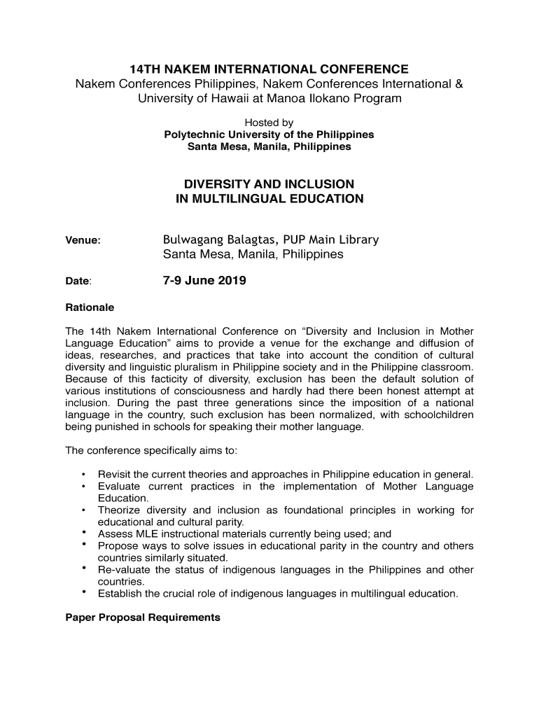 14TH NAKED INTERNATIONAL CONFERENCE Naked Conferences Philippines, Naked Conferences International & University of Hawaii at Manor Loan Program Hosted by Polytechnic University of the Philippines