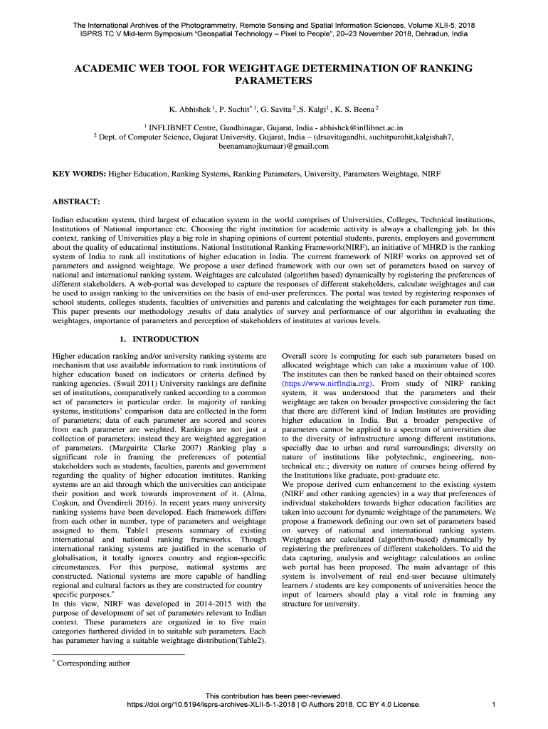 The International Archives of the Photogrammetry, Remote Sensing and Spatial Information Sciences, Volume XLII5, 2018 ISPS TC V Midterm Symposium Geospatial Technology Pixel to People, 2023 November