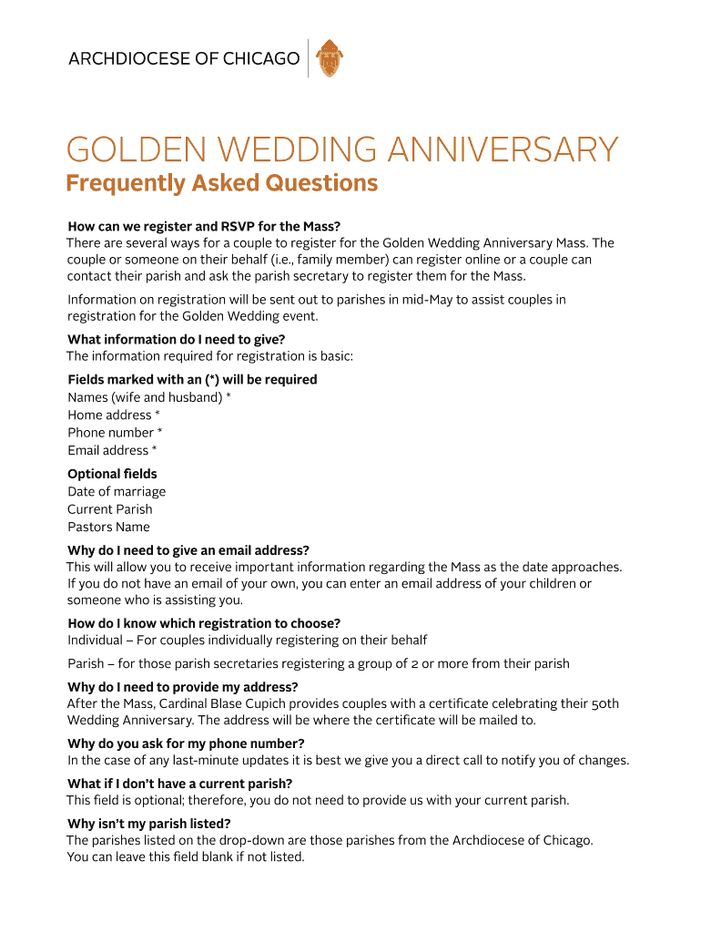 There are several ways for a couple to register for the Golden Wedding Anniversary Mass. The
