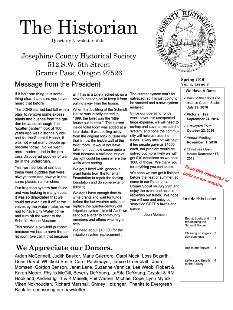 Quarterly Newsletter of the Josephine County Historical Society