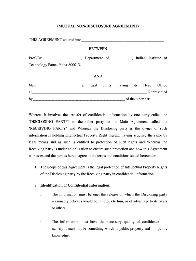 Get the free Non Disclosure Agreement - IIT Patna
