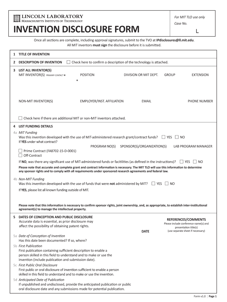 Get the free Lincoln Laboratory Invention Disclosure Form - MIT - web mit