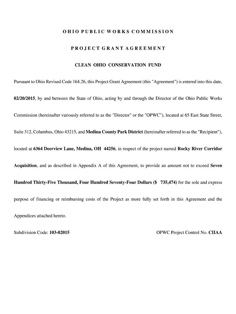 Get the free ohiopublicworkscommis sionprojectgrantagree ment clean ...