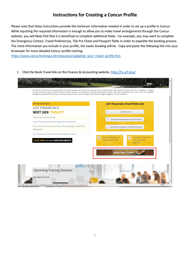 InstructionsforCreatingaConcurProfile PleasenotethattheseinstructionsprovidetheminimuminformationneededinordertosetupaprofileinConcur. WhileinputtingtherequiredinformationisenoughtoallowyoutomaketravelarrangementsthroughtheConcur