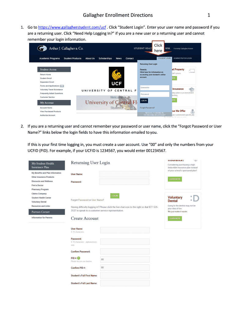 Gallagher Enrollment Directions11. Go to https://www.gallagherstudent.com/ucf. Click Student Login. Enter your username and password if you