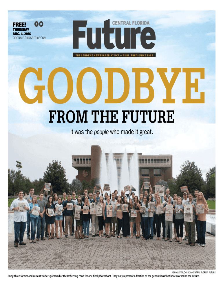 FREE! THURSDAY AUG. 4, 2016 CENTRALFLORIDAFUTURE.COME H E S T U D E N T N E W S PA P E R AT U C F P U B L I S H E D S I N C E 19 6 8GOODBYE FROM THE FUTURE It was the people who made it great. BERNARD