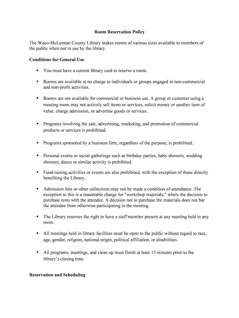 The WacoMcLennan County Library makes rooms of various sizes available to members of