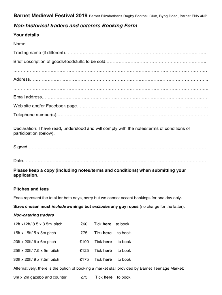 Nonhistorical traders and caterers Booking Form