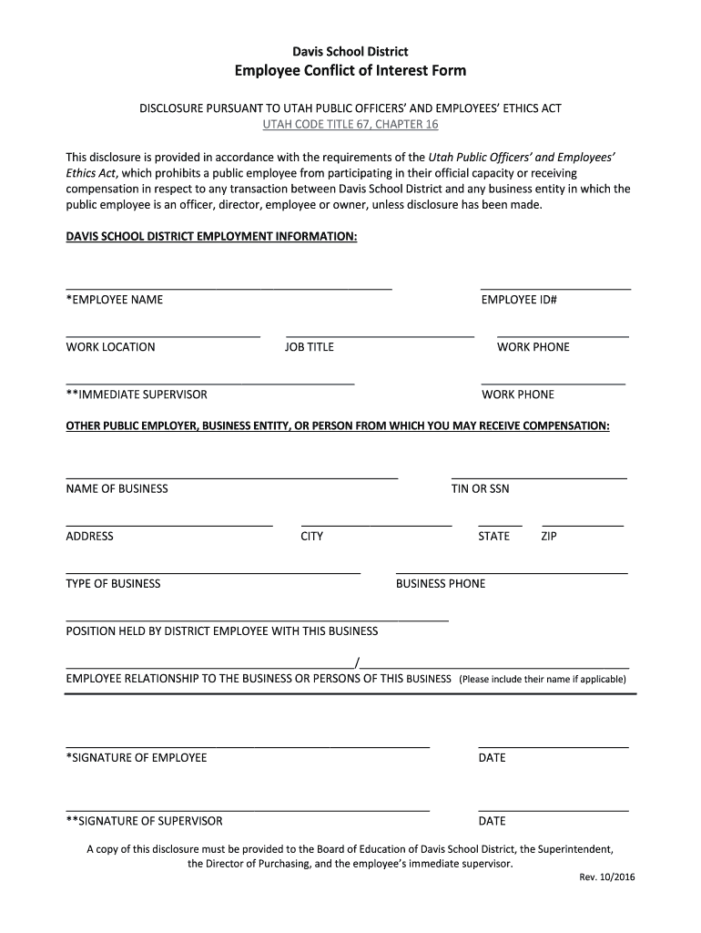 Get the free Employee Conflict of Interest Form - Davis School District