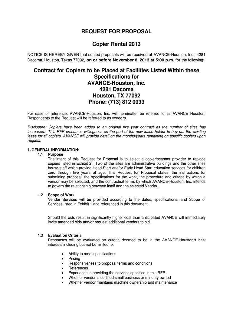 Get the free NOTICE IS HEREBY GIVEN that sealed proposals will be received at AVANCE-Houston, Inc