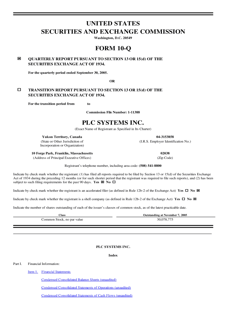 QUARTERLY REPORT PURSUANT TO SECTION 13 OR 15(d) OF THE