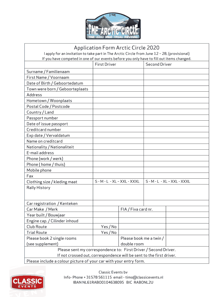 Application Form Arctic Circle 2020 I apply for an invitation to take part in The Arctic Circle from June 12 28, (provisional) If you have competed in one of our events before you only have to fill