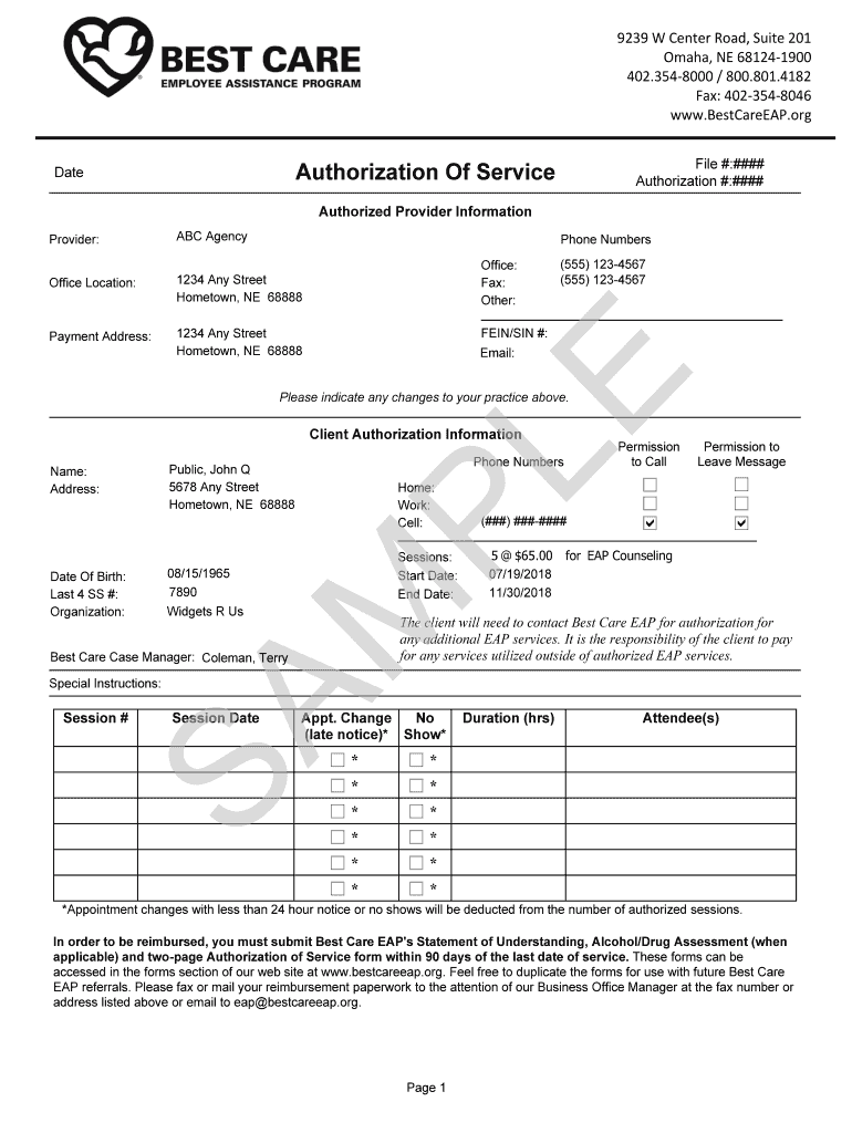 Authorization #:####Authorization Of ServiceDateAuthorized Provider Information