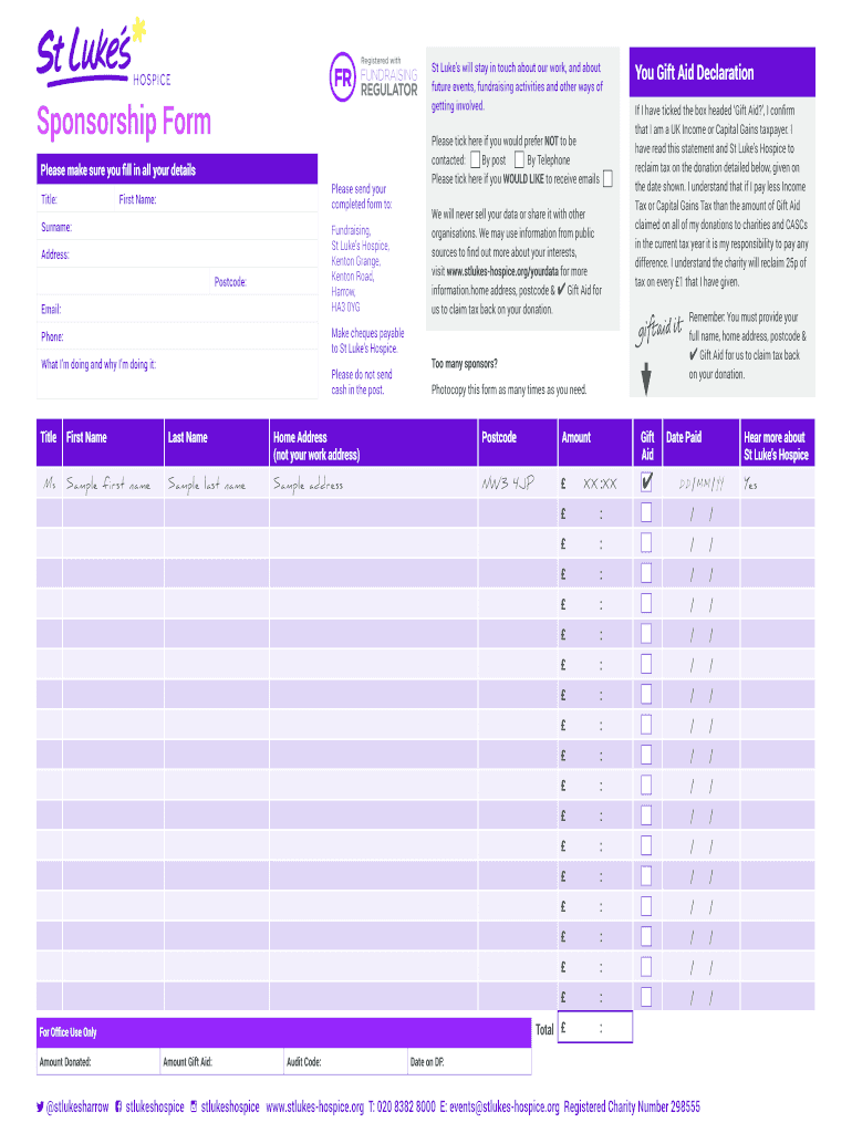 The sponsorship form - st typically requires information such as the name and contact details of the sponsor and the individual or organization being sponsored, the nature of the sponsorship, the duration of the sponsorship, and any financial or in-kind support being provided.