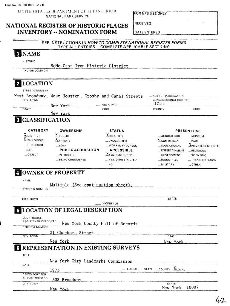 Form No 10300 (ROV. 1074)UNITHDSTAThS DEPARTMENT I Often IN I L.RECREATIONAL REGISTER OF HISTORIC PLACES INVENTORY NOMINATION FORM SEE INSTRUCTIONS IN HOW TO COMPLETE NATIONAL REGISTER FORMS TYPE