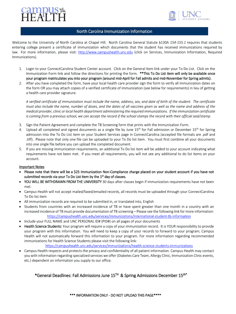 Get the free North Carolina Immunization Information - campushealth.unc.edu