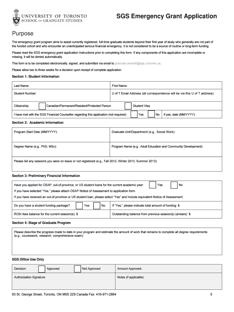 To fill out the SGS emergency grant application, follow these steps: