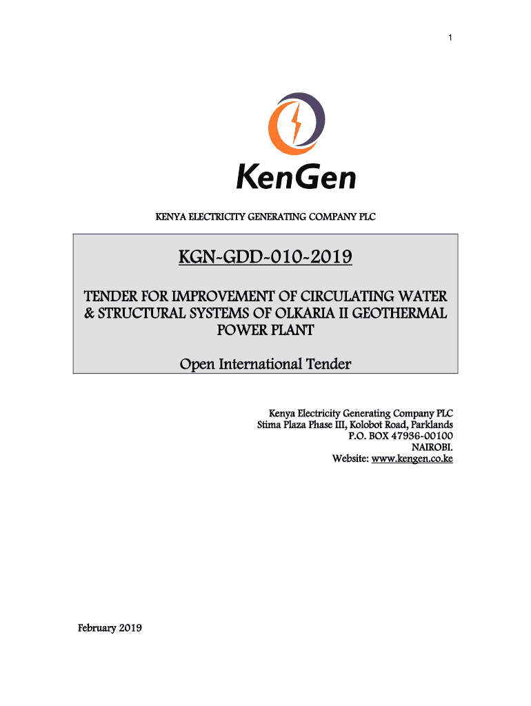 1KENYA ELECTRICITY GENERATING COMPANY PLCKGNGDD0102019 TENDER FOR IMPROVEMENT OF CIRCULATING WATER & STRUCTURAL SYSTEMS OF SOLARIA II GEOTHERMAL POWER PLANT Open International Tender Kenya Electricity