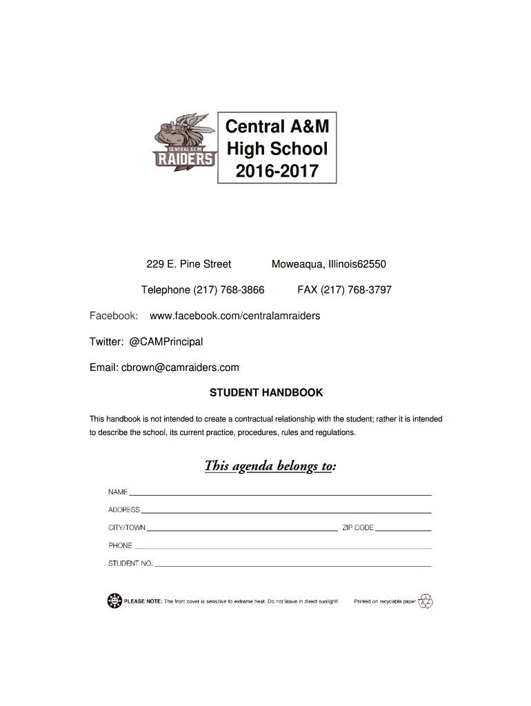 Central A&M High School 20162017229 E. Pine StreetMoweaqua, Illinois62550Telephone (217) 7683866 Facebook:FAX (217) 7683797www.facebook.com/centralamraidersTwitter: Principal Email: brown camraiders.com