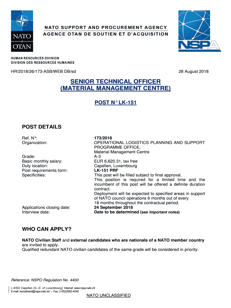 Get the free senior technical officer (material management centre) - France ...