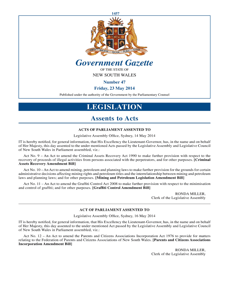 1457Government Gazette THE STATE ONE SOUTH WALESNumber 47Friday, 23 May 2014Published under the authority of the Government by the Parliamentary CounselLEGISLATION
