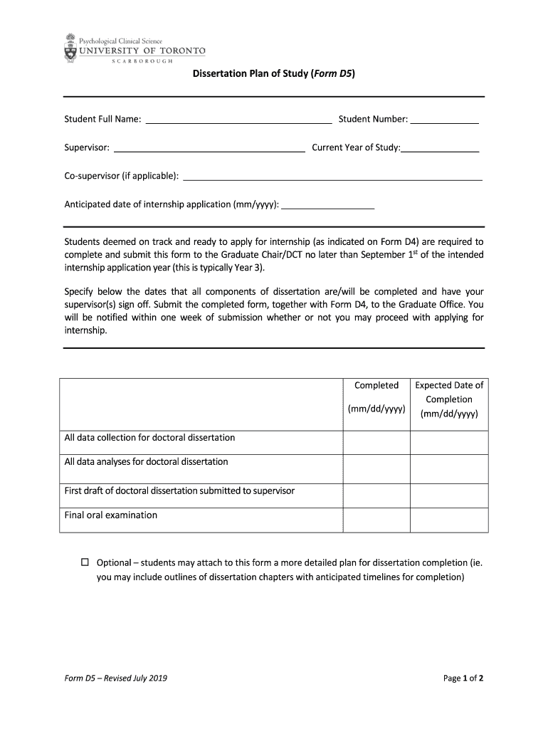 Get the free Dissertation Plan of Study (Form D5 - utsc.utoronto.ca