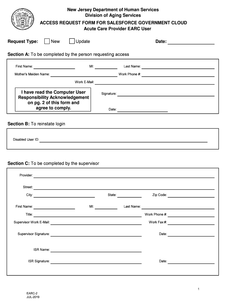 ACCESS REQUEST FORM FOR SALESFORCE GOVERNMENT CLOUD