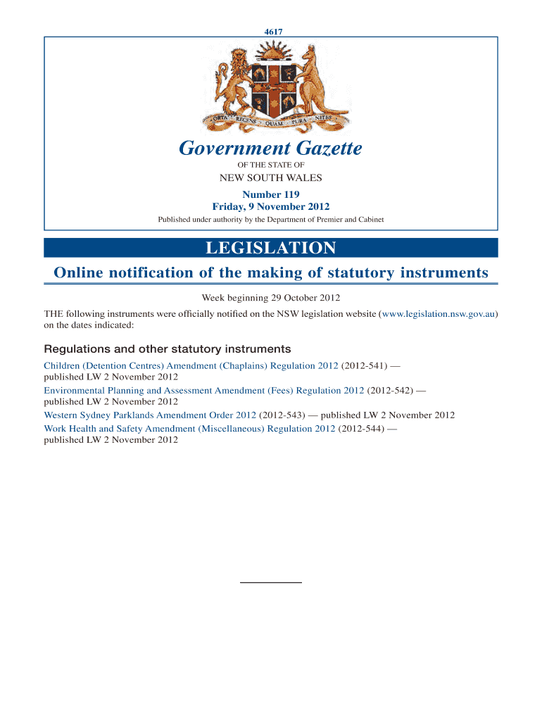 Get the free New South Wales Government Gazette No. 45 of 9 November ...