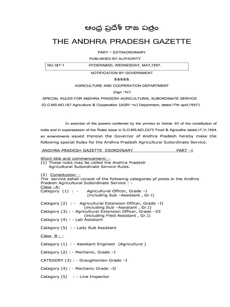 Get the free AP Agricultural Subordinate Service Rules