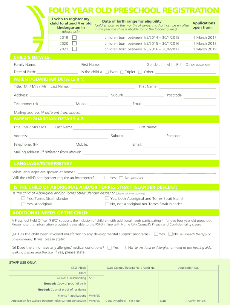 Get the free FOUR YEAR OLD PRESCHOOL REGISTRATION - Hume City ...